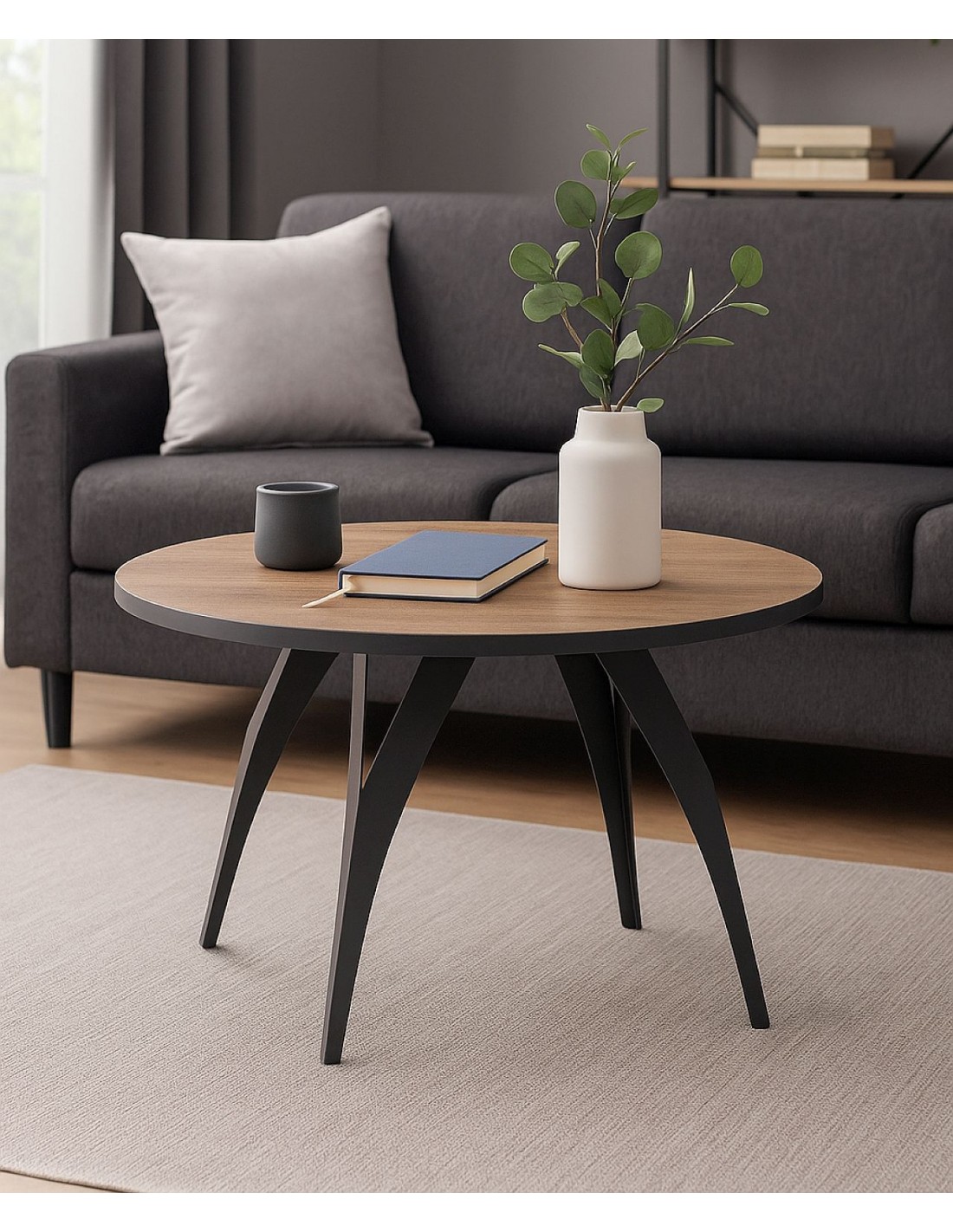 Круглая форма придает изделию визуальную мягкость и позволяет легко интегрировать его как в меньшие, так и в большие помещения. Вы можете выбрать стол с черным краем, который тонко подчеркивает контуры столешницы.