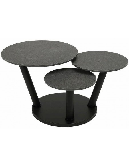 Современный вращающийся журнальный столик OSTEO имеет три подвижные керамические столешницы, устойчивое основание и элегантный дизайн.