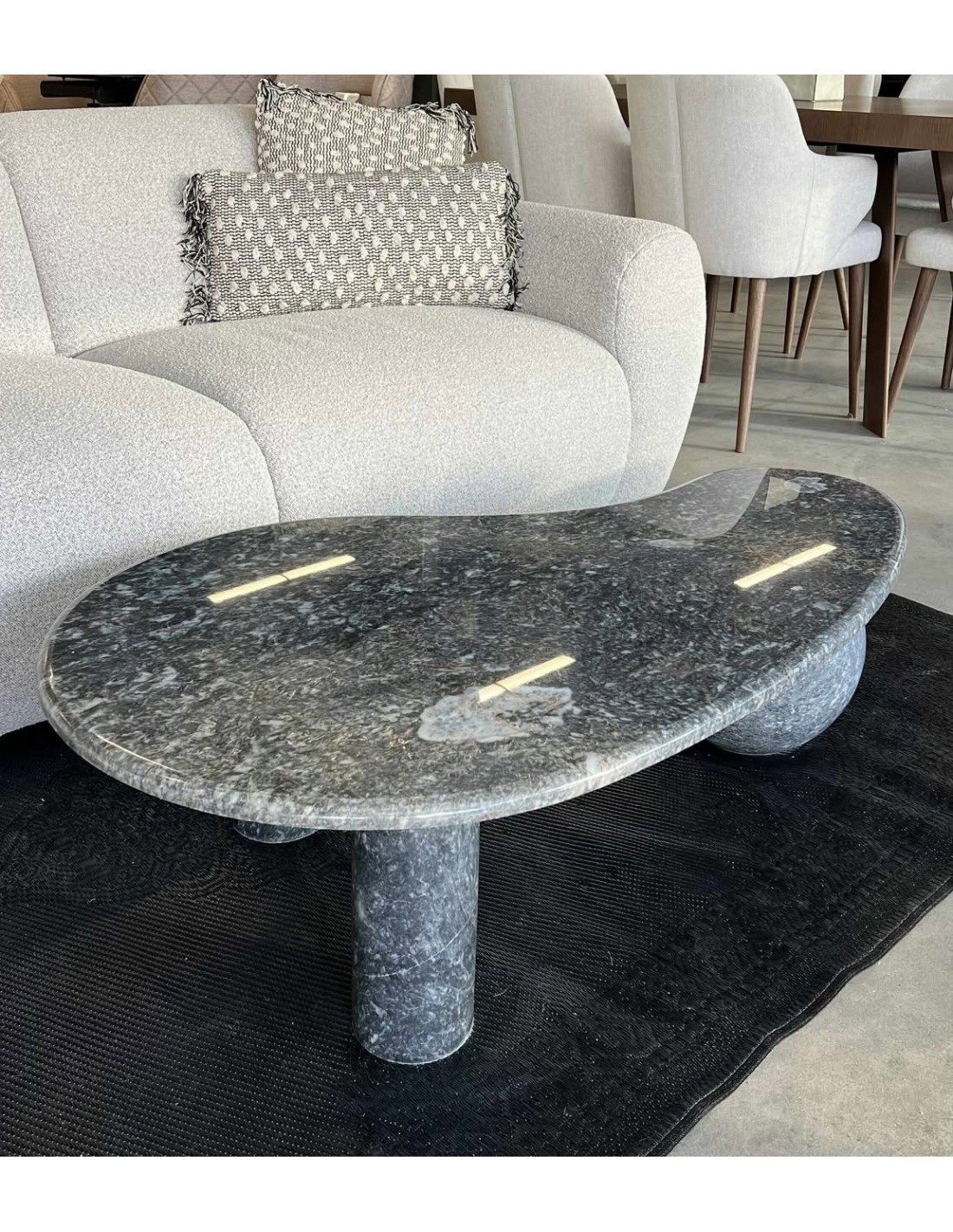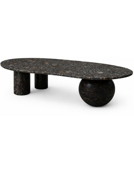 Журнальный столик AQUA — изысканный и скульптурный предмет мебели, который сразу привлекает внимание своей формой и текстурой натурального камня. Тёмный столик с узором под чёрный камень выглядит сдержанно роскошно, но при этом сохраняет ощущение лёгкости в интерьере.
