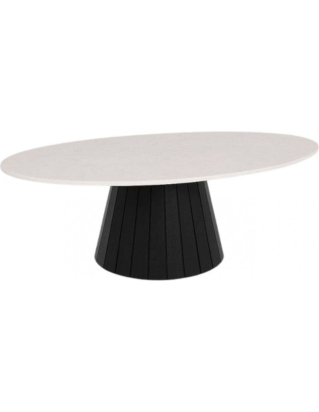 Izgatavots pēc Accanto grupas pasūtījuma (LU)Журнальный столик JAZZ — элегантный акцент интерьера со светлой овальной столешницей и массивным черным основанием. Современный дизайн для вашей гостиной.