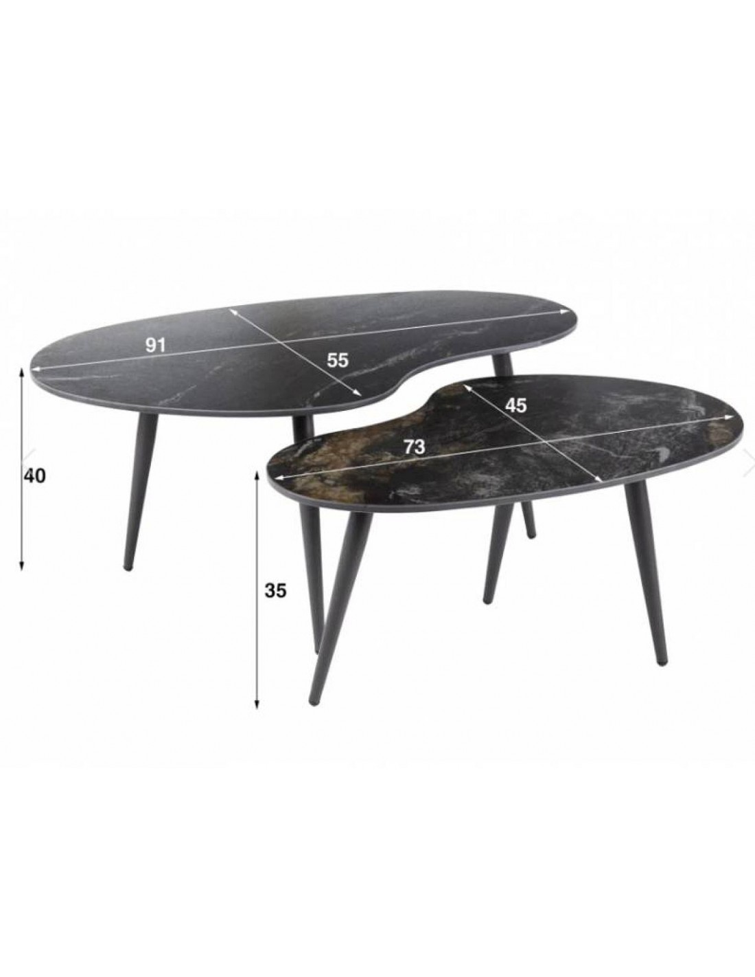 Комплект журнальных столиков FOSSIL 91x55x40h / 73x45x35h черный с коричневыми