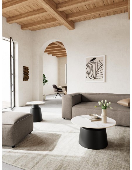 Кофейный стол SANTORINI сочетает стильный дизайн и практичность. Столешница выполнена из качественной керамики с натуральной текстурой, придающей интерьеру элегантность. Прочное металлическое основание обеспечивает устойчивость и долговечность. Компактный размер делает стол идеальным для гостиной, гармонично дополняя современный или индустриальный интерьер. Прост в уходе и удобен для ежедневного использования.