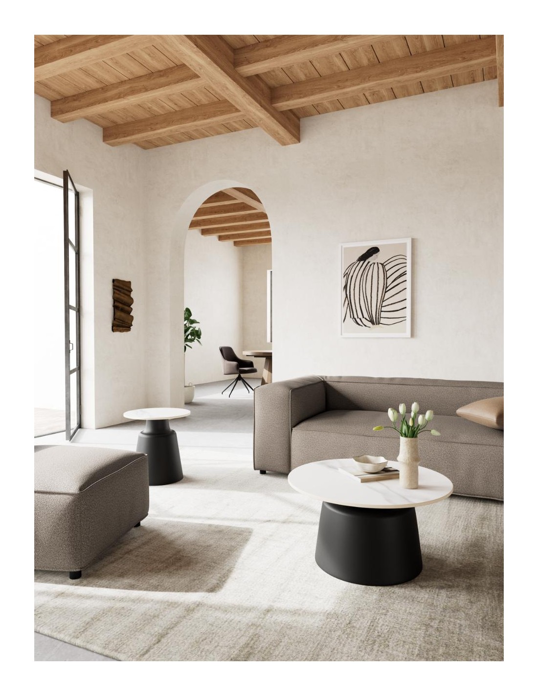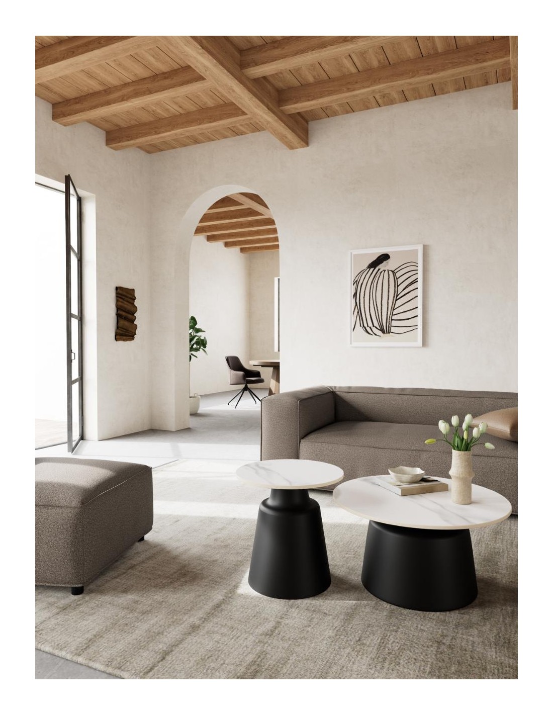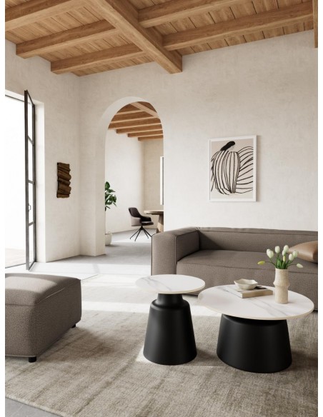 Кофейный стол SANTORINI – современный дизайн с керамической столешницей и металлическим основанием. Стиль и надежность для гостиной.