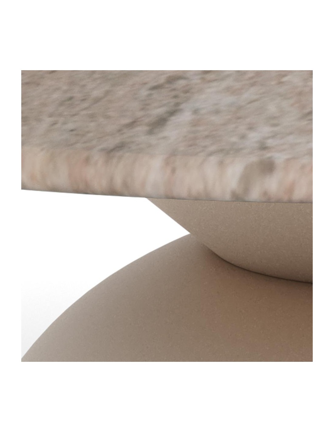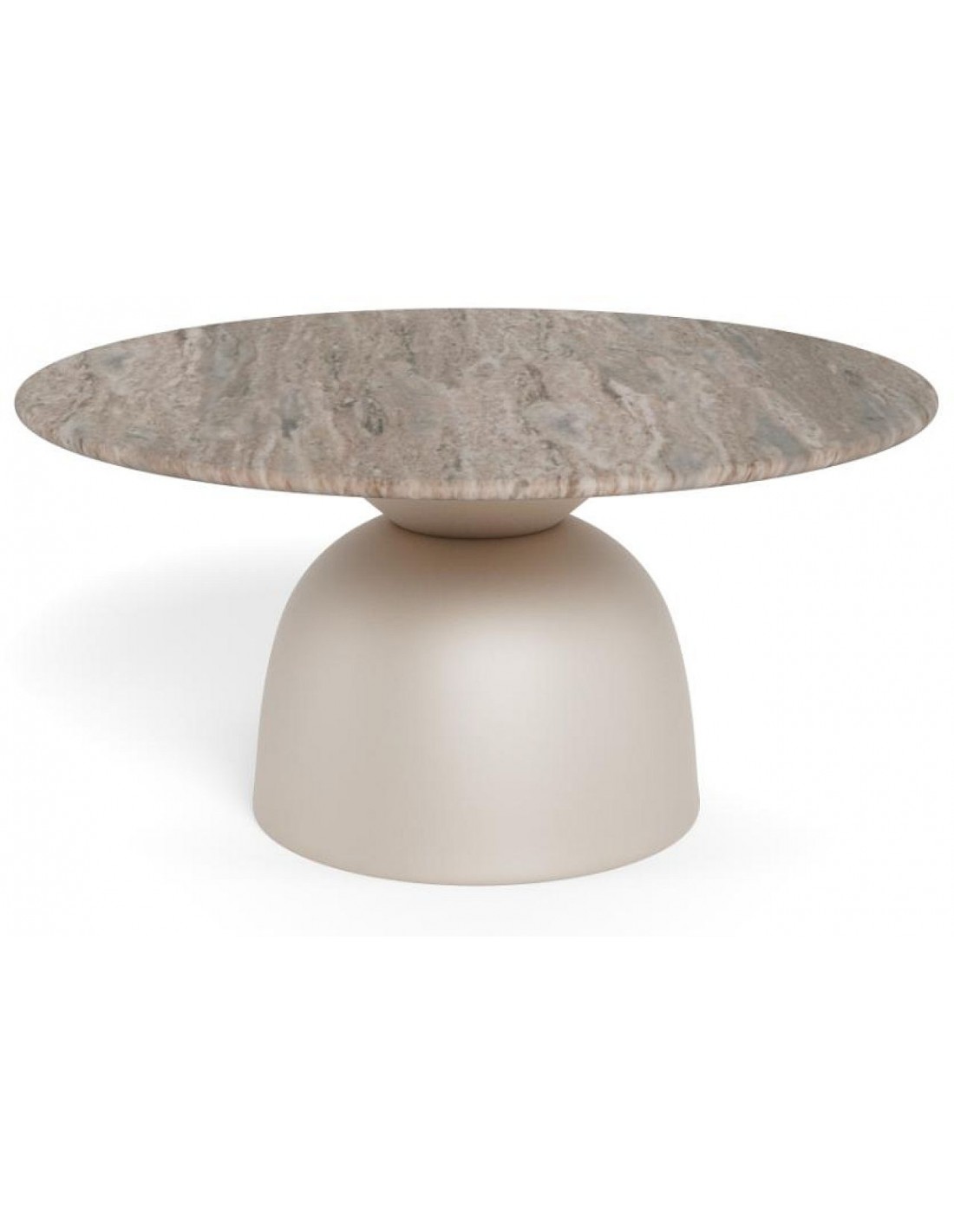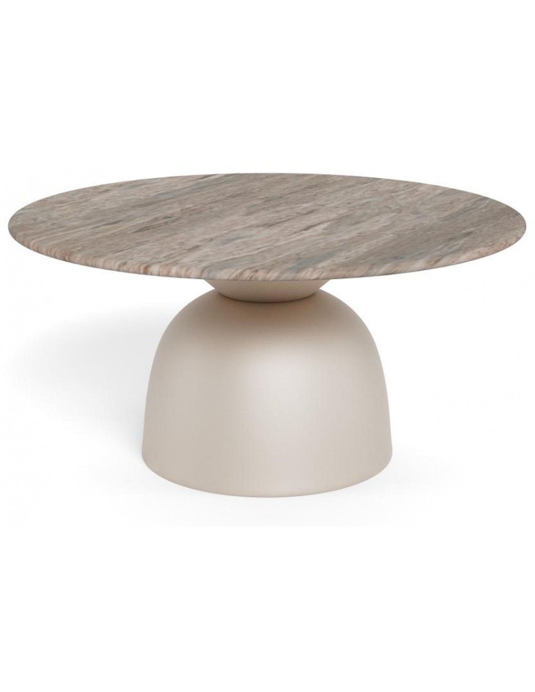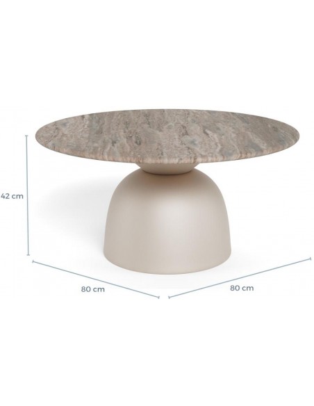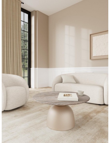 Круглый журнальный столик с серо-коричневой мраморной столешницей и металлическим основанием цвета кашемира добавит элегантности вашему интерьеру.